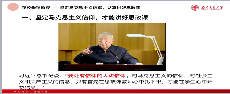 支部会学习了习近平总书记在思政课教师座谈会上重要讲话精神。源俊者流长,根深者叶茂,思想政治理论课是落实立德树人根本任务的关键课程。用习近平新时代中国特色社会主义思想铸魂育人,引导学生增强中国特色社会主义道路自信、理论自信、制度自信、文化自信,厚植爱国主义情怀。我校朱玲教授坚持马克思主义信仰,认真讲好思政课。会议指出朱玲教授为了贴近学生,感动学生,在课堂上尽可能使用学生熟悉的人和事。常以学校历史中的重大事件和人物为例向学生进行爱国主义教育。如在讲到全民族抗日战争时,便举了茅以升的例子。
