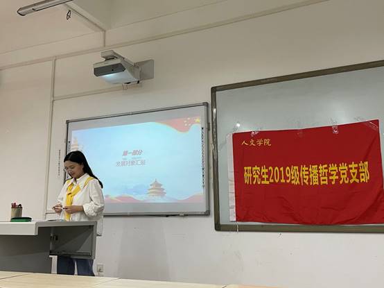 研2019级传播哲学党支部书记林茂同志主持,该支部11位党员同志、被发展对象、积极分子参与此次会议。