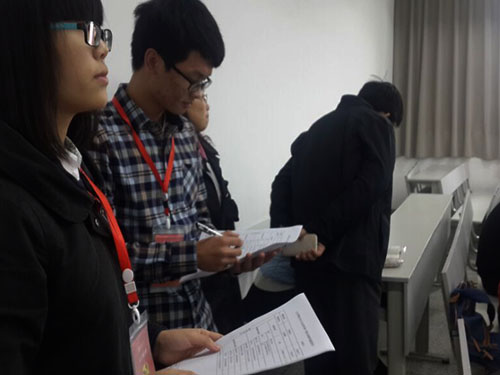 党员服务队分为四组,配合学院教务部门进行了教学检查,针对课堂的教学资料(例如教材、大纲、教案以及学生作业)、课堂教学质量(例如课堂教学秩序、课堂出勤率、教师到位情况、教学方式方法以及教学效果),以及课程期中考核情况进行了检查。