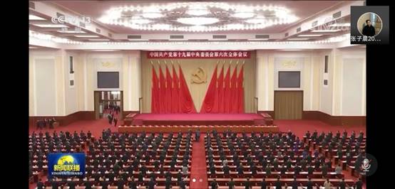 活动第二项,王笑颜同学通过组织参会同学共同观看党的第十九届中央委员会第六次全体会议新闻报道,研读党的第十九届中央委员会第六次全体会议公报,带领大家深入学习了十九届六中全会精神。强调要把学习六中全会精神与正在进行的党史学习教育相结合,与实际生活相结合,通过学习武装头脑、统一思想、指导学习生活。