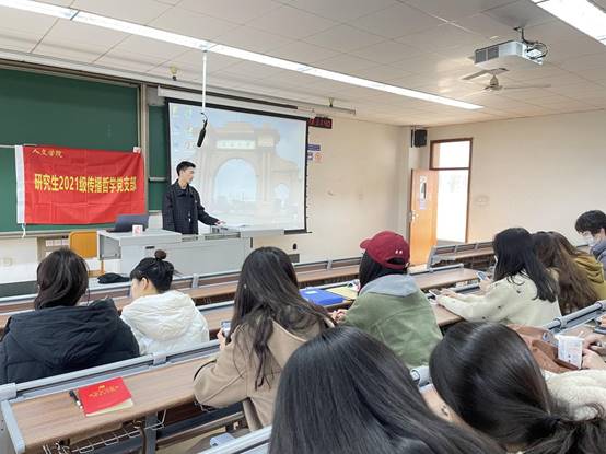 2021年12月2日下午13:00,研究生2021级传播哲学党支部在九里校区4422教室举行中国共产党第十九届中央委员会第六次全体会议精神专题学习会,本次学习由研究生2021级传播哲学党支部书记陈子龙同志主持,支部共24名党员及入党积极分子参加学习,学习会分为共同观看《中国共产党第十九届中央委员会第六次全体会议公报》全文播报视频及支部同志分享学习感想两个部分。