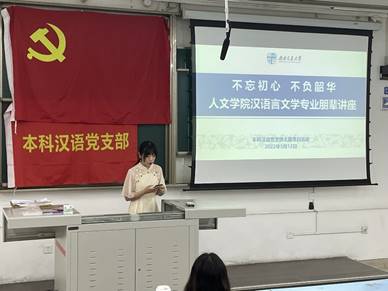 本科汉语党支部于X2216举办“不忘初心 不负韶华”专业朋辈讲座。此次讲座邀请到2018级汉语言文学专业的曾蕙心、杨泽琨、黎圣瑜、曾玺林、任俊杰五位优秀同学为学弟学妹们进行保研、留学、考研、工作等方面的分享。