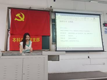 然后是杨泽琨同学就留学进行了分享。她结合具体国家以及具体专业等问题分析了留学中不同学校、不同学制的区别与注意事项,建议同学们在保证自己学业成绩与语言能力的基础上,充分考虑自己的兴趣爱好与志向,选择自己的学校。