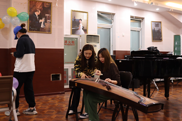 随着同学们的欢呼,此次活动也进行到了尾声。主持人向在座的同学们发出邀请,让在座的同学们可以上台亲身体验弹奏琵琶、古筝与钢琴。