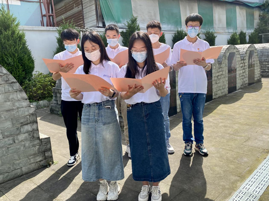 2022年6月14日上午9时许,九顶山蒙难烈士陵园晴空朗照,松柏荫荫,研究生2021级中文党支部来到陵园通过微视频拍摄和诗歌朗诵方式致敬先烈,咏颂党恩。活动全程在支委的带领下有序展开,支部成员全情投入,收获颇丰。