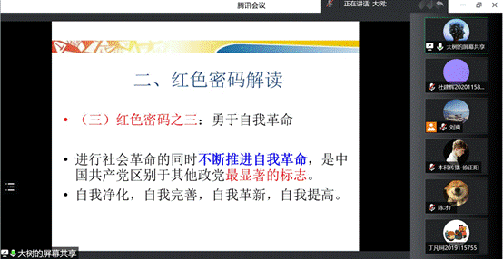 20点50分,本次“百年回望与红色密码——中国共产党的历史及其启示”主题党课圆满结束。