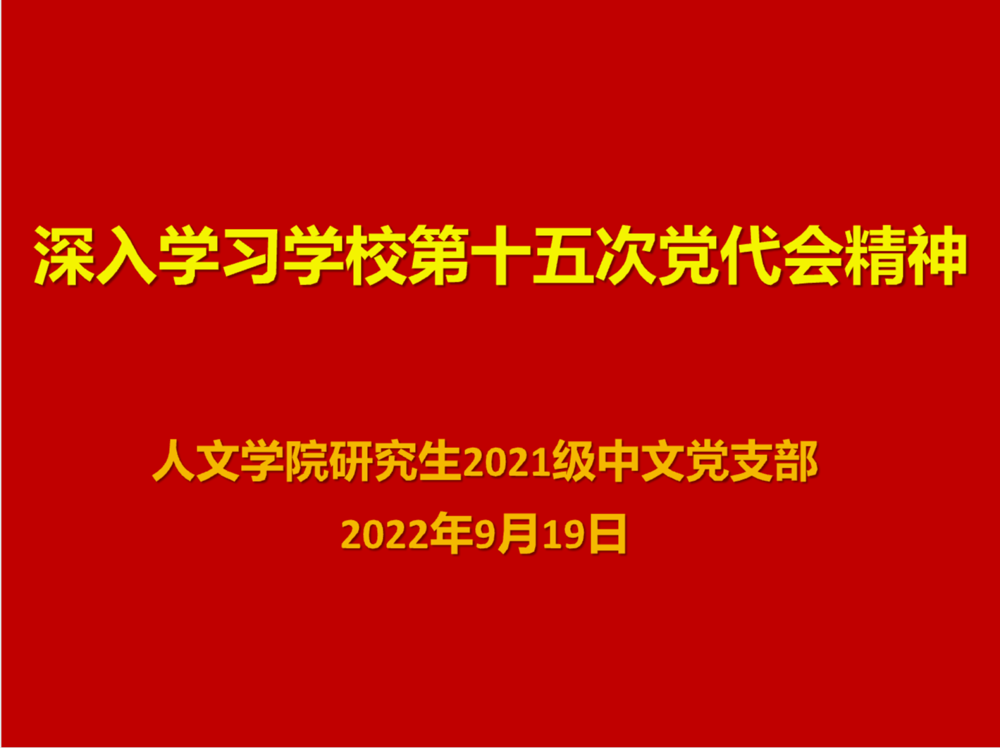 为深入学习习近平新时代中国特色社会主义思想和学校第十五次党代会精神,牢固树立新时代青年责任意识,提高党员党性修养,研究生2021级中文党支部于2022年9月19日下午5时许,通过腾讯会议组织全体党员和入党积极分子学习学校党委王顺洪书记《踔厉奋发 笃行不怠 谱写中华民族伟大复兴的西南交大新篇章》报告精神。此次学习活动由支部书记刘凯杰主持。