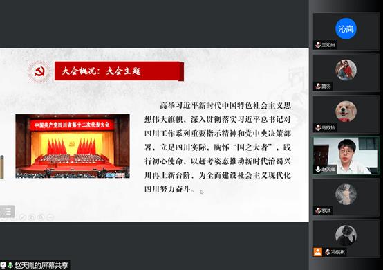 研究生会临时党支部依托腾讯会议APP开展学习贯彻省第十二次党代会精神学习活动。本次活动由本科汉语党支部书记刘晗悦同志主持,特别邀请到木瓜视频
