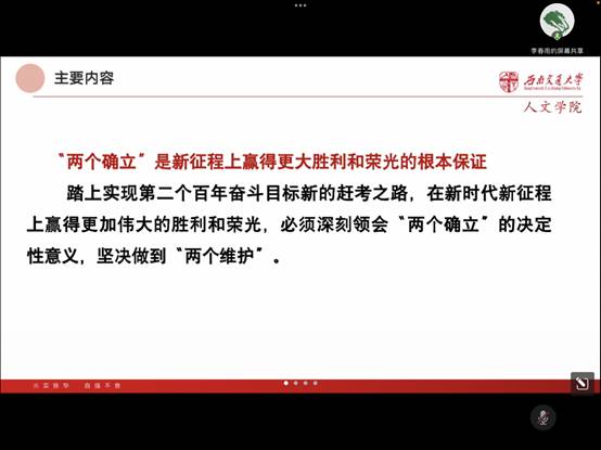 研2022级传播哲学党支部联动研2022级中文党支部在腾讯会议召开支部政治学习会议。会议由研2022级中文党支部李春雨同志主讲,两个支部的党员同志及入党积极分子参加学习。