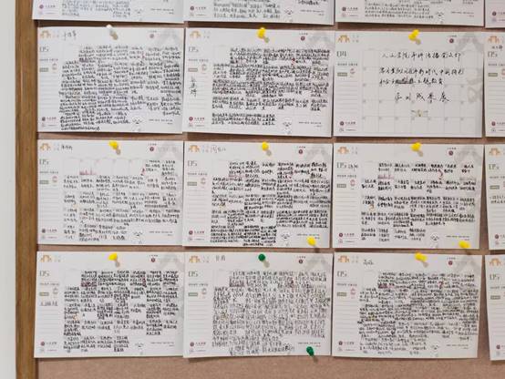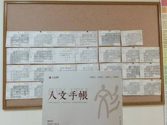 展出了本科传播党支部开展的“一学一记·金句摘抄五月版”活动成果。新颖的形式、清秀的字迹,吸引了众多老师、同学前来观看学习。
