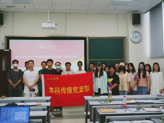 本科传播党支部书记刘爽说到:目前本科传播党支部已成功开展两期领学分享会,第一期由支部正式党员徐正阳领学分享《习近平“典”亮新时代》,第二期由支部正式党员王琳栋领学分享《关于在全党大兴调查研究的工作方案》,支部成员在分享会上相互交流,相互启发。