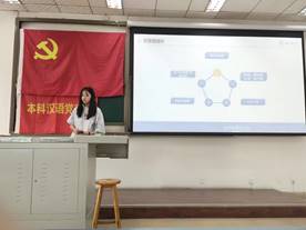 此次讲坛由朱思颖同志主持,她首先向大家介绍了此次讲坛包括朋辈介绍、经验分享、互动总结三个部分并依次向大家介绍了今天党支部邀请到6位优秀同学的基本情况及毕业去向。