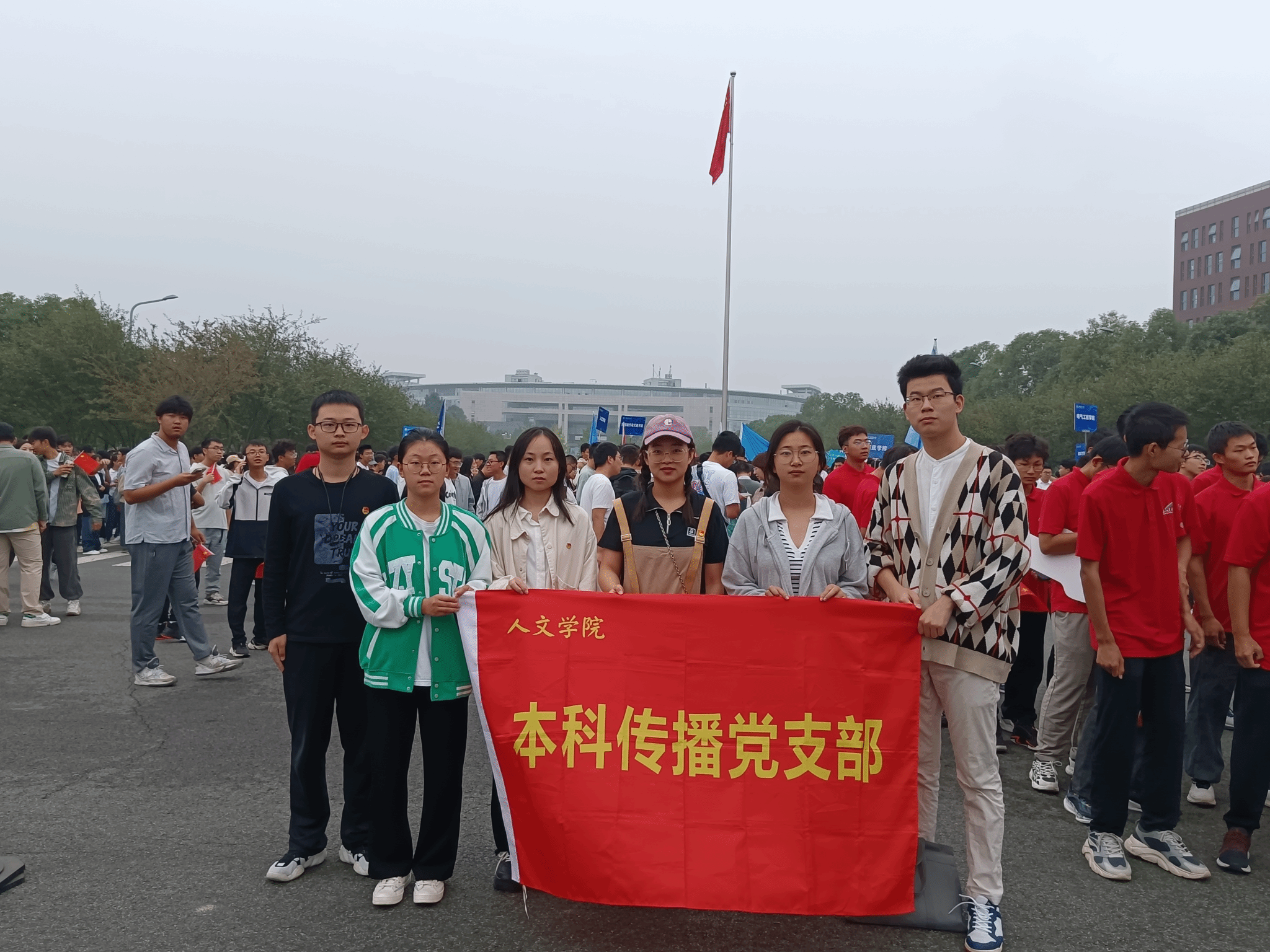 本科传播党支部的同学陆续到达升旗台,共同等候升旗仪式的开始。清晨的阳光洒在升旗广场,无疑为这庄严的场合增添了一抹温暖与柔和。