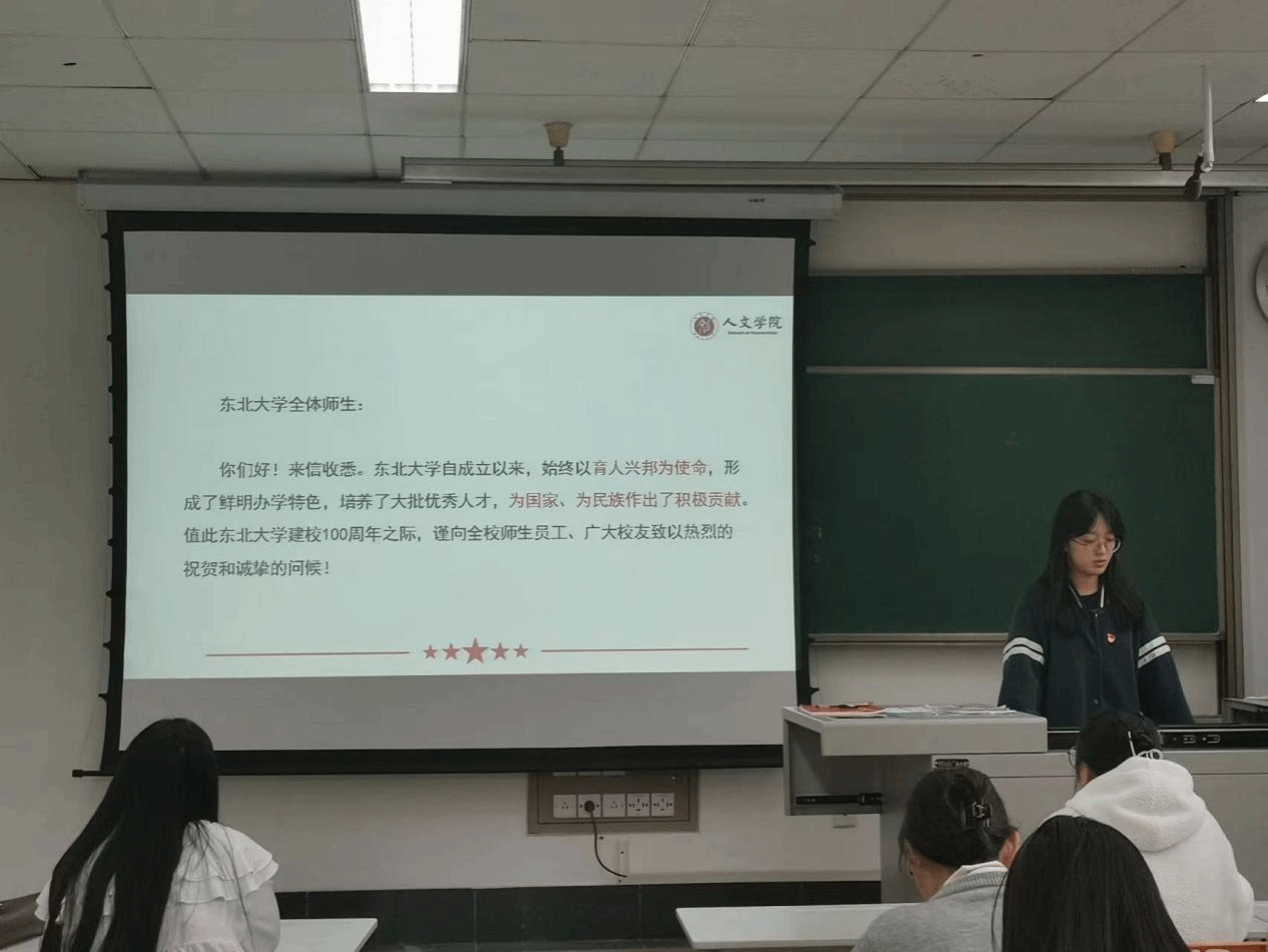 为提高支部全体党员的党性修养,培养青年党员对党的认同感、归属感,2023年11月9日下午4:30,研2023级中文党支部于九里校区J4221开展主题党日活动,集中学习习近平总书记给东北大学全体师生重要回信精神和习近平总书记对宣传思想文化工作的重要指示精神。本次活动由王艺橙同志主持,支部全体党员到会学习。