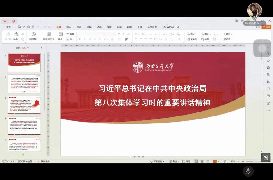 研究生会临时党支部于线上开展了支部理论学习会,集中学习习近平总书记在新时代推动东北全面振兴座谈会上的重要讲话,以及习近平总书记在中共中央政治局第八次集体学习时的重要讲话精神。本次学习由研2023级中文党支部书记王艺橙同志和研2023级传播哲学党支部副书记张馨月同志担任领学人,全体成员参与学习。