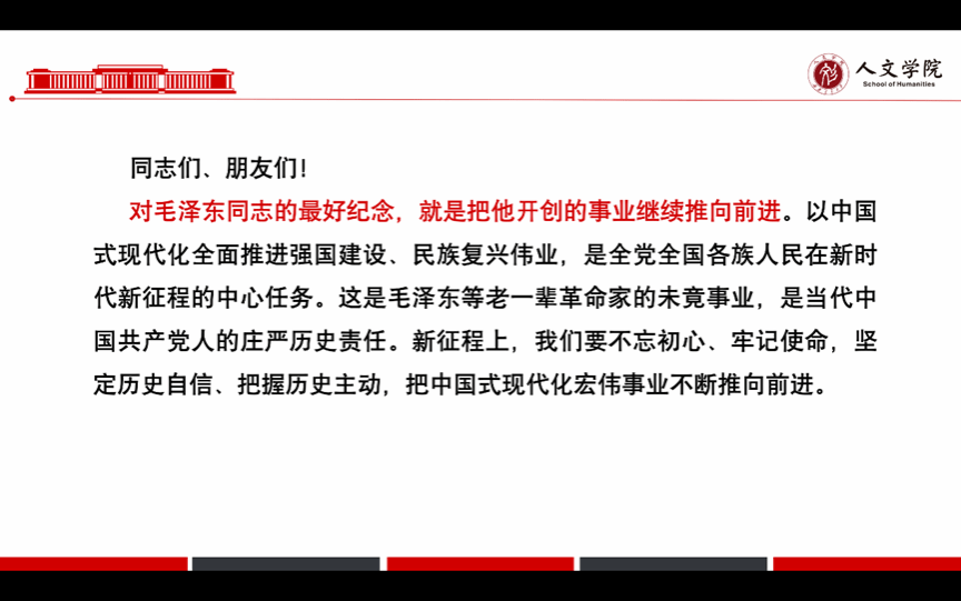 晚上8时,会议结束。通过本次学习,本科广告党支部全体成员充分认识到毛泽东同志在新中国成立及发展过程中起到的伟大作用,认识到作为新一代青年人的历史使命,大家积极讨论,充分彰显了为以中国式现代化全面推进强国建设、民族复兴伟业而奋勇前进的坚定决心。
