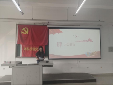 紧接着进行大会进行第二项议程,补选支部委员。会议选举2021级曾品贤同志为支部副书记,2021级满珍明同志为支部组织委员,2021级张媛同志为支部纪检委员。