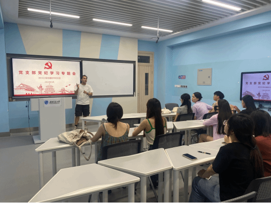 为深入学习领会习近平总书记关于党纪学习教育的重要讲话和重要指示精神,2024年5月16日晚,研2022级传播哲学党支部在九里校区J4205开展党纪学习教育专题会暨“学条例 守党纪 强党性”主题党日活动。本次活动由支部书记王超主持。