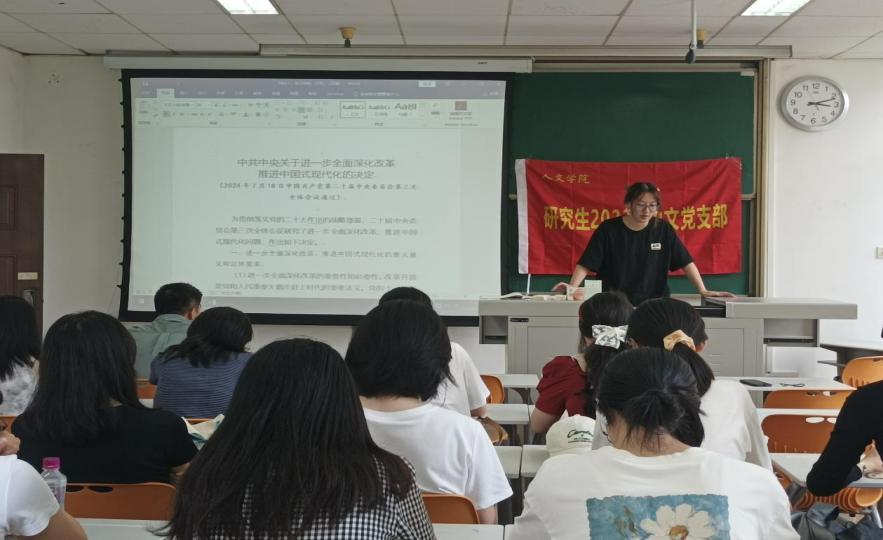 研究生2023级中文党支部于九里校区J4221开展主题党日活动。本次活动由支部书记王艺橙同志主持,支部成员到会学习。