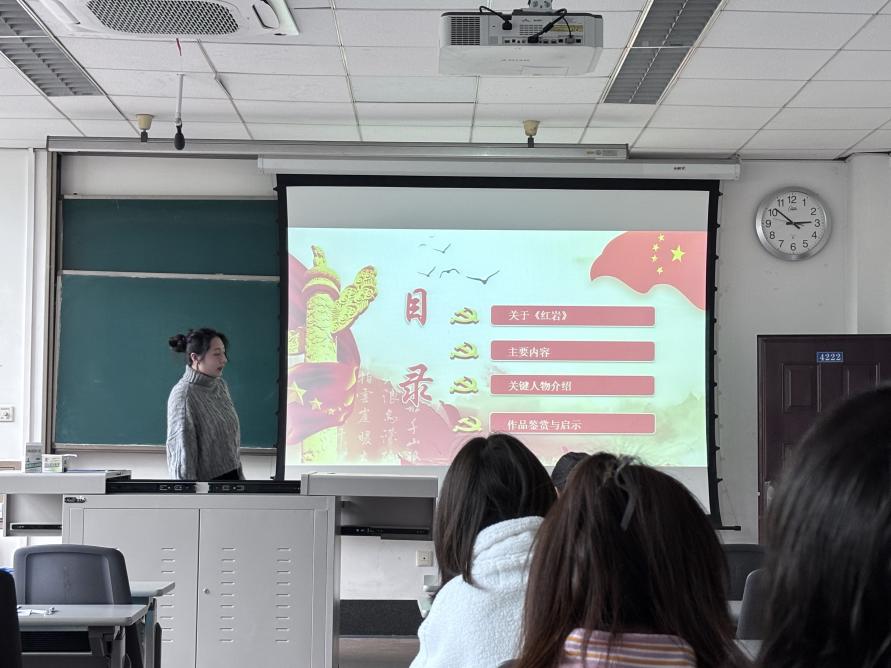 第二篇章为“阅读红色书籍,品味红色精神”环节,由两位同志进行分享。首先潘诒堃同志介绍了经典红色著作《红岩》,她对书籍的主要内容进行了详细梳理,并深入地阐述了自己的心得体会,使在场的同志深刻学习到了革命先辈们坚如磐石的理想信念和英勇无畏的奋斗精神。