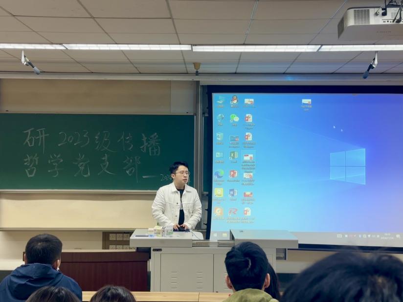 研2023级传播哲学党支部在九里校区J4224教室开展11月主题党日活动。本次会议由研2023级传播哲学党支部书记赵鸿绵同志主持,木瓜视频