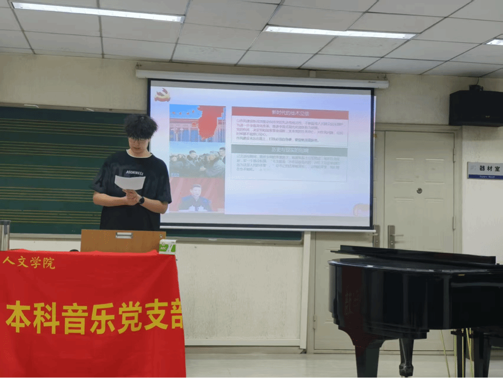 本科音乐党支部在犀浦校区音乐系音专一教室开展5月主题党日活动。本次活动由邱志豪同志主持,支部全体成员参加学习。