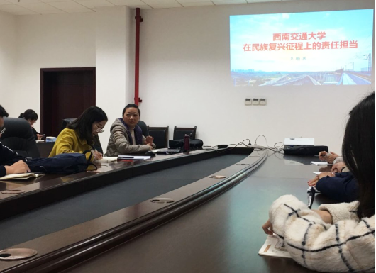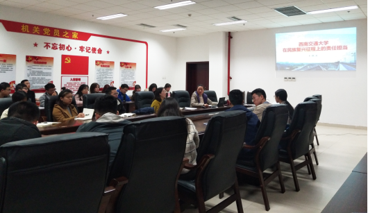 本科汉语支部结合工作实际,联合交运学院学生党支部,邀请学校机关党委副书记、纪委书记陈璐同志在综合楼104会议室为同志们进行主题宣讲,学习《王顺洪为全体中层干部讲授党课:在交通强国征程上西南交大的责任担当》,传达王顺洪同志专题党课精神,宣传交大人先进事迹,强化党员的使命担当。会议由木瓜视频