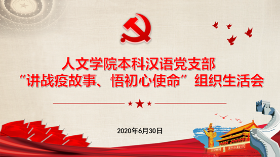 本科汉语党支部于6月30日10:30,利用“腾讯会议”平台顺利召开“讲战疫故事,悟初心使命”组织生活会。会议由本科汉语党支部书记刘晗悦同志主持,木瓜视频