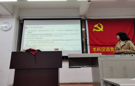 2020年11月5日下午16:00,本科汉语党支部在X8215教室召开会议,按照学校党委“读党史、学党史、知党史”的活动通知,选取自读资料,认真学习了《抗击新冠肺炎疫情的中国行动》白皮书、《习近平关于统筹疫情防控和经济社会发展重要论述选编》和《中国共产党的九十年》,重温我们党从成立以来,为中华民族和人民群众建立的不朽功勋,感受2020年新冠肺炎疫情期间我党所做出的巨大贡献。本次读书会系列专题二由支部的三个领学小组逐一进行读书汇报,并由支部成员展开研讨交流。会议由本科汉语党支部书记刘晗悦同志主持。