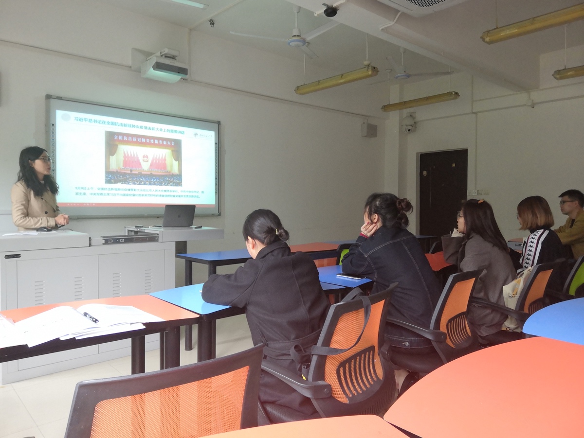 11月5日,2018级硕士传播哲学党支部在X1105举行了“青春的我,信仰的光”主题党日活动。会议由支部书记李倩同志主持,支部预备党员易莎同志领学“习近平总书记在全国抗击新冠肺炎疫情表彰大会上的重要讲话”和“习近平总书记在纪念中国人民志愿军抗美援朝出国作战70周年大会上的重要讲话”。