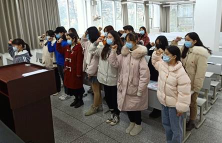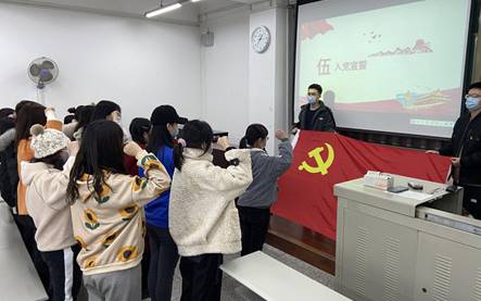 全体支部党员对各位新加入党组织的预备党员表示了热烈欢迎。在党支部副书记王岚同志的领誓下,十三位预备党员持立正姿势,举右手、握实拳,面向中国共产党党旗郑重宣誓。宣誓后,刘晗悦同志说道:“为预备党员召开入党宣誓仪式能够增强党员的党性修养,号召其向党表示自我的坚决意志。总之,入党宣誓一生只有唯一一次,但入党誓词必须永远铭记于心。仪式简练而短暂,意义深远而长久。”大会最后,支部书记刘晗悦同志寄语各位预备党员成为支部建设的主干和新鲜血液,推动支部继续向前发展。(通讯员:王岚