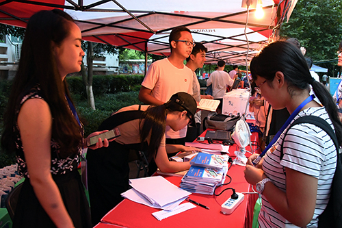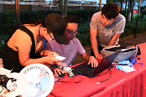 新生的住宿点分别在北区天佑斋18栋和19栋,而迎新点位居相隔甚远的南区,但志愿者们依旧不辞辛劳,穿梭在北区和南区,带领一个又一个学弟学妹找到他们在交大的“家”。还有志愿者在朋友圈晒出了微信运动步数排行榜,笑侃道“荣登前三甲的我俩,为迎新事业而奋斗。”截至午时13点,她和一位志愿者的步数已高达两万步。此次迎新活动,院学生工作组组长曹乔老师、团委书记刘爽老师、辅导员李雯老师等都参与了指导工作。午时,曹乔老师来到迎新现场指导迎新工作,首次参加木瓜视频