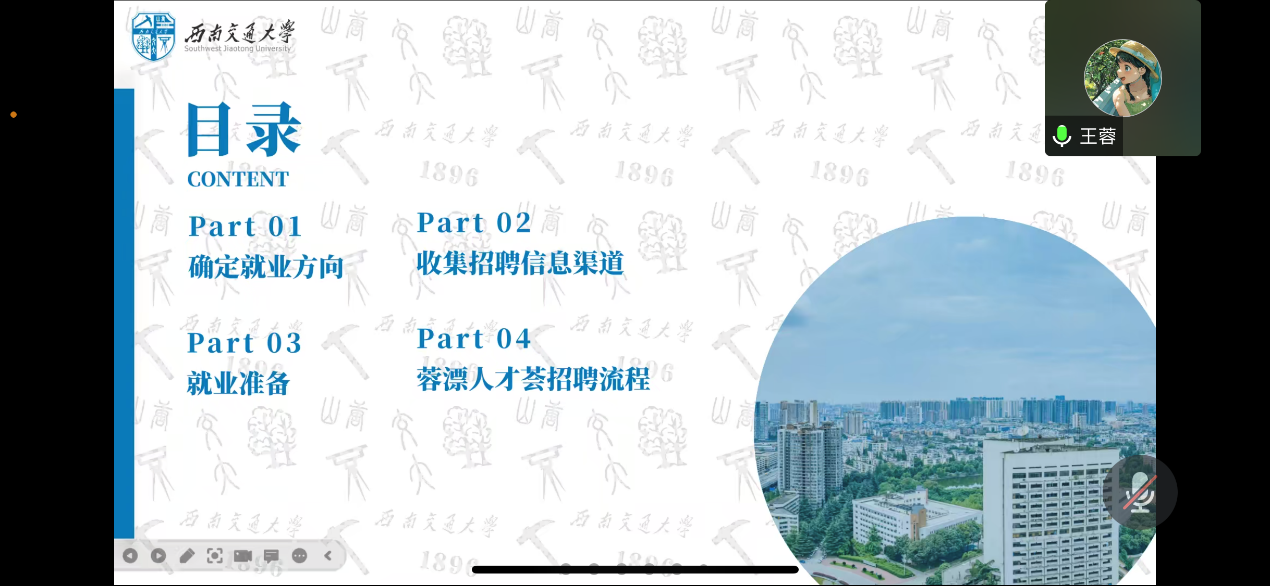 张金凤主要从入职高校的途径、选择高校的条件、高校考试流程等三个方面分享了求职经历,详细介绍了入职高校的岗位设计、报名信息获取以及考试题型,并分享了相关的图书资料。王蓉主要从确定就业方向、收集招聘信息渠道、就业准备以及蓉漂人才荟招聘流程介绍了入职公立中学语文老师的经历,提醒学弟学妹做好就业前期准备,关注人才引进信息,多参加模拟面试,提升求职竞争力。