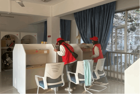 青年志愿者协会的带领下,在天佑斋二十栋自习室完成了清扫整理工作。为了营造更好的自习氛围,志愿者们分工明确,相互协作,清理自习室地面垃圾,摆放桌面上的书籍,擦拭书柜上的灰尘等,大家齐心协力对自习室进行了彻底的打扫。