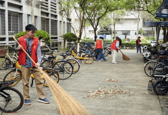 青年志愿者协会工作人员的带领下,在位于北区宿舍天佑斋20栋附近的劳动实践区开展劳动实践。志愿者们在劳动中分工明确、互相协助,清理宿舍楼下的垃圾,打扫道路上的落花落叶,修剪整理周边的灌木丛、草地,摆放楼下杂乱停放的共享单车。在本次活动中,志愿者们积极投入,任劳任怨,细致认真地捡拾园区内的每一处垃圾落叶,真正诠释了“躬行”的内涵与意义。此次活动的开展,不仅使宿舍楼下的公共环境得到了改善,也让志愿者们更加深入地了解了公共卫生的重要性。