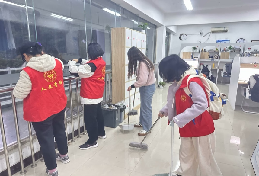的青年志愿者协会带领着15名志愿者,在天佑斋二十栋自习室开展了一场清扫整理活动。志愿者们秉持着为同学们营造整洁舒适学习环境的信念,分工有序,默契配合。他们认真清扫地面垃圾,将凌乱桌面的书籍摆放整齐,细心擦拭书柜灰尘,不放过任何一个角落。经过一番努力,自习室环境焕然一新,为同学们提供了更加宜人的学习空间,也彰显了木瓜视频