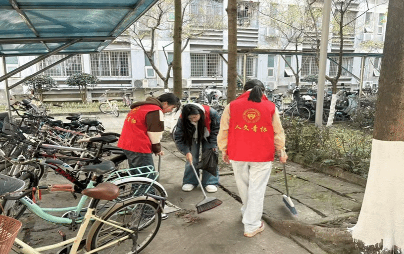 青年志愿者协会的组织下,前往北区宿舍天佑斋20栋旁的劳动实践区域进行实践活动。志愿者们分工合作、互帮互助,他们清扫宿舍楼下的废弃物,扫除道路落叶,修剪整理周边的灌木和草地,并将杂乱停放的共享单车摆放整齐。活动中,志愿者们积极参与,不辞辛劳,他们细心地捡拾园区内的每一处垃圾和落叶,生动展现了“躬身力行”的精神。此次活动不仅提升了宿舍楼周边公共环境的整洁度,也让志愿者们深刻体会到了公共卫生维护的重要性。