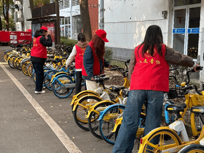 青年志愿者协会的组织下,15名志愿者在学校北区四食堂前,开展“共享单车整理”劳动实践活动。志愿者们穿上统一马甲,戴好标志性红帽,按照预先分配好的任务,有条不紊地开始对乱停放的共享单车进行重新排列与归置,以恢复通行秩序,确保行人安全。经过志愿者们的整理,北区食堂前的街道面貌得到了显著改善,优化了通行状况,校园安全得到更好的保障。通过本次活动,志愿者们意识到单车秩序摆放的重要性,也提高了劳动能力,增强了劳动意识,培养了组织能力、沟通能力和团队协作能力等综合素质。