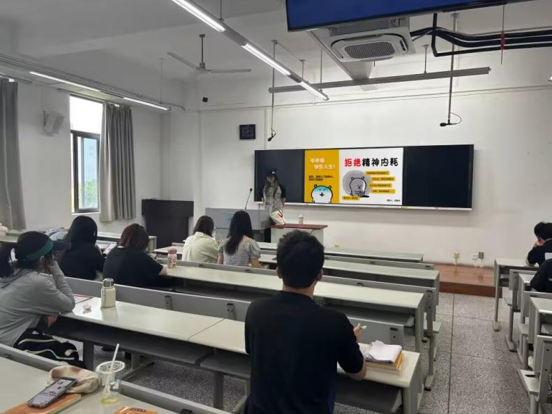 23级汉语2班针对当代大学生普遍存在的精神内耗问题,开展了“拒绝精神内耗”主题班会。班会创新采用“情景剧+认知重构”的形式,同学们学习使用“思维记录表”识别自动负性思维,并通过小组讨论探索替代性思考方式。班会最具特色的是“断舍离”承诺墙,同学们写下想要舍弃的消极思维模式,共同许下“减少内耗”的心理契约。