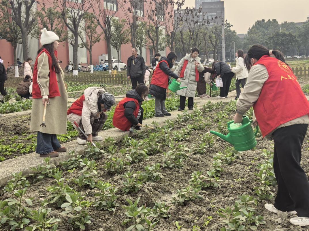 依托“开心农场”劳动实践平台,于12月25日下午16时30分组织学生开展日常养护活动。在物业中心实践指导老师组织下,同学们针对近期农田杂草生长、土壤干旱等情况,开展了以浇水、除草、观察记录为核心的养护工作,在躬身劳作与细致观察中深化对劳动价值的认识。