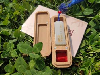 学院为学生准备的第三件礼物,是一方印章,这项礼物是硕士毕业生的专属纪念。印章为长方体形状,通体采用纯白类玉石材质,侧面是“二零二一木瓜视频