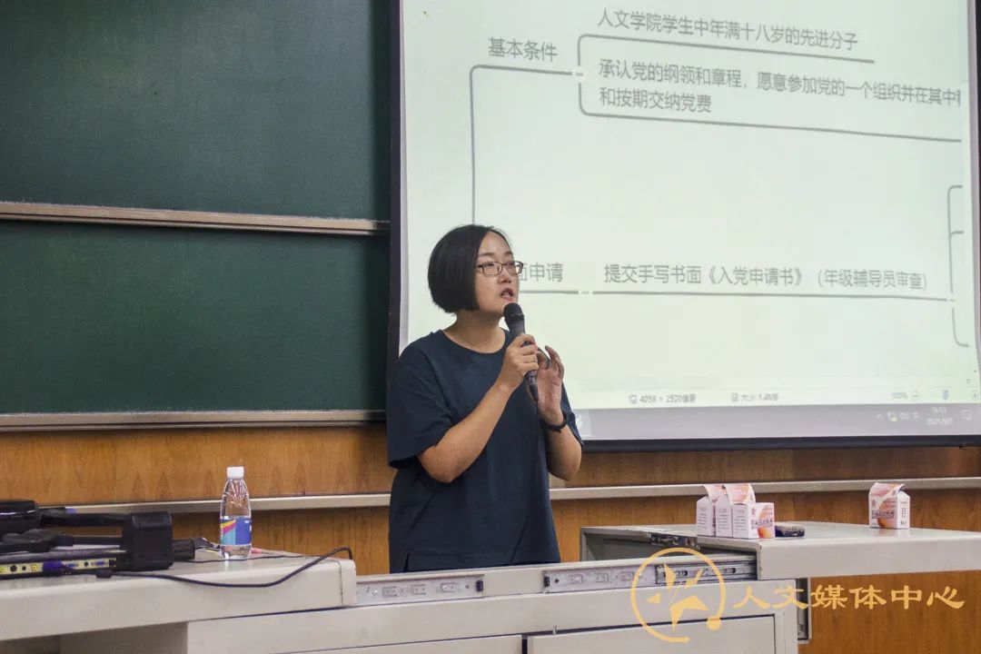 会上,乔真真老师从操作层面上详细介绍了成为党员的流程,她指出,从申请入党到成为一名党员至少需要两年的时间,有意向加入中国共产党的同学可以先学习党章,提前做好准备。入党大致分为几个阶段,提交入党申请书、确定为入党积极分子、成为发展对象、成为预备党员和转为正式党员,每一步都需在民主推举下进行,期间每季度向党组织提交至少1篇思想报告,并参加党校培训。民主推举在每年3月份和9月份进行,由各班团支部和学院各党支部主持。乔老师还对入党时间、党龄等问题进行了讲解。