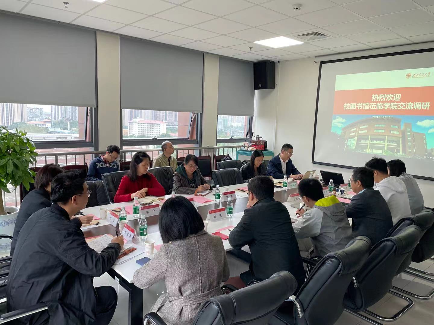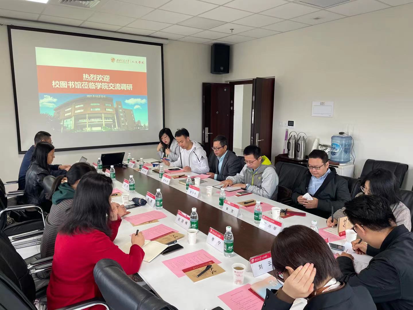 2021年10月15日上午9:30,校图书馆陈丽华副馆长一行到我院开展调研交流。我院副院长沈如泉、党委副书记郭立昌、传播系系主任蒋宁平、哲学所所长崔罡、音乐系教师周尚琴、综合办主任王燕参加调研会。
