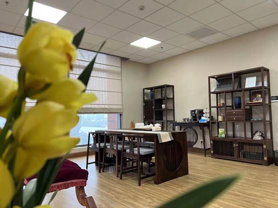 教工小家以整体中式典雅风格为主,集书法展示、古筝表演、茶艺插花体验等为一体,散发着浓郁的人文气息和诗情画意,在交大校园中独树一帜。教工小家的一些装饰陈列摆设及茶叶咖啡很多为教职工自发捐赠,体现了人文老师们对这个“家”的深情厚谊。