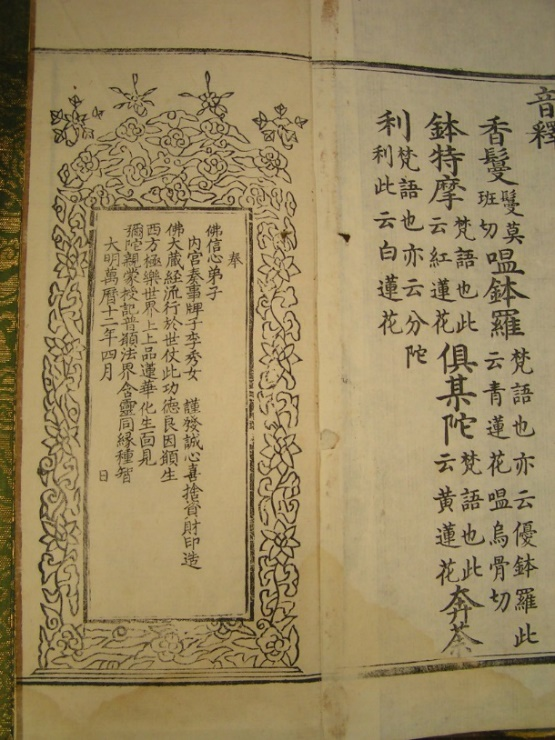 2.重庆图书馆藏《永乐北藏》。龙教授发现该馆所藏《北藏》原本收录的“色贻厥嘉猷勉”函钱谦益《首楞严经疏解蒙钞》六十卷,有注文“此六个字系钱谦益着前清奉旨抽毁”,又有“大清康熙四十五年三月十八日重修”的刊记,再结合《北藏》卷首的明神宗“皇帝敕谕”已经删去了飞龙、祥云等图案,故认为该馆所藏《北藏》为清康熙四十五年刷印。