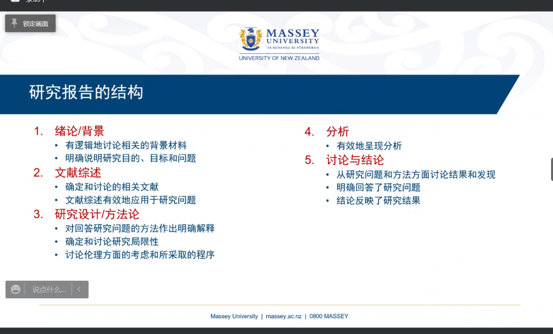 之后,Dr.Imran就研究的具体方法展开介绍,如研究问题的陈述、研究问题的目标、文献综述、研究方法的设计、研究数据和分析等。Dr.Imran特别强调做研究应具备批判性思维,批判看待前人的相关成果,对我们进行研究工作具有重要的意义。