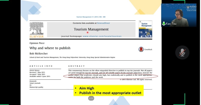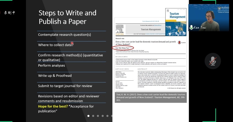 中文系教授汪启明做主持人的学术讲座在线上展开。本次讲座以“如何在知名期刊上发表文章”为主题,Dr.Kan Tsui全程用英语讲解,汪馨宁承担翻译工作,木瓜视频