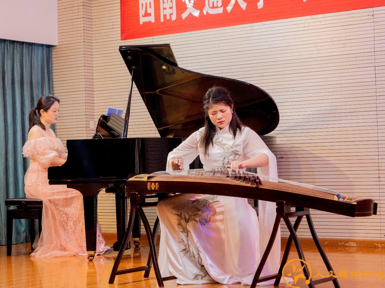 美育精品节目展示,青春柔美的女声小合唱《立夏》用白描手法,对行将离别的诸多情愫做出刻画,似风过荷,意境清澈。古筝与钢琴协奏《定风波》受苏轼被贬黄州失意时所作词作情感而创作,如泣如诉的琴声抒发了生活的勇者淡然面对命运迭起的人生观。《且看行云》舞者那静静的、欣长的身影,表达出舞者在行云里的落寞,散发出淡然忧郁的气质。洋溢着浓郁民族风情的扬琴与钢琴打击乐协奏《阳光照射在塔什库尔干》突出了扬琴的欢快跳跃节奏,表现了帕米尔高原明媚壮丽的风光和能歌善舞的塔吉克民族人民庆祝节日的欢乐场面。师生们以扎实的功底和默契的配合为现场的观众带来了一场极具艺术表现力和感染力的美的体验,现场掌声不断,赞叹不已。