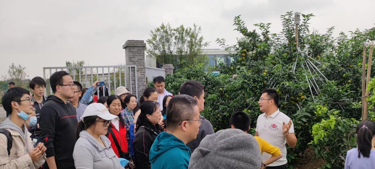 在领略了传统文化之后,老师们来到了眉山果蔬种植基地体验“乡村振兴战略”带来的新气象。在一排排整齐的葡萄架前,“全国乡村振兴青年先锋”称号获得者刘沈厅同志为大家讲解新农村、新农业、新农人的故事。