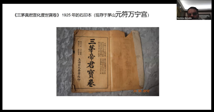 演讲结束后,评议人陶金老师进一步详细介绍了早期茅君信仰的演变,尤其强调了茅君从地方血食神到道教上清经派真人的身份转换。陶老师还展示了明代上清宗坛冥途路引的图片、茅君图像转变和当代茅山道教举行三茅忏的录像,并介绍了关于《三茅宝卷》和洞天福地的新近研究。木瓜视频